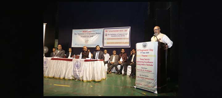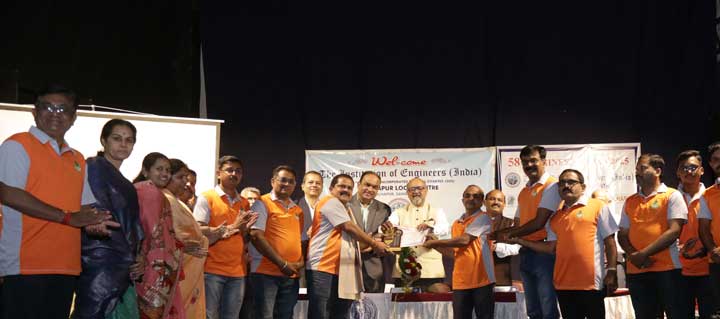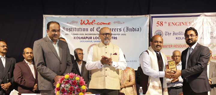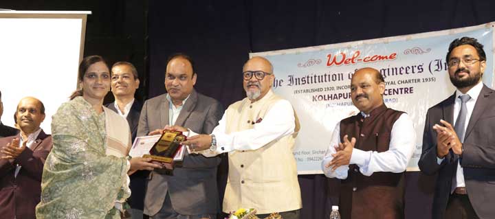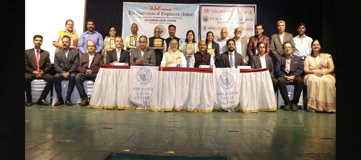 The 55th Engineers'Day Celebration was organized by the Institution of Engineers India, Kolhapur Local Centre at Shahu Smarak Bhavan yesterday evening. The theme of the programme was "Smart Engineering for Better World". The theme lecture was delivered by Dr. S. D. Gorantiwar, Head, Agricultural Engineering Department and PI, CAAST on Climate Smart Agriculture Water Management, M.P.K.V., Rahuri. The programme started by " दीप प्रज्वलन" and "फोटो पूजन" of Great Engineer Bharatratn Sir M. Visvesvaraya at the hands of Dignitaries. Then Dr-Mahesh Chougule , Chairman of IEI KLC welcomed chief guest by offering a Shwal, Shriphal, bouquet and memento. Er. Ajay Deshpande , Coordinator of the event introduced Dr. Sunil Gorantiwar . Dr. Gorantiwar spoke on need for 4.0 Industrial Revolution in Agriculture Sector and presented on Smart Engineering applications development at Rahuri. Er. Ajay Deshpande briefed on 'Concept of Best Engineer and Social Awards' by IEI, KLC. The Best Engineer Awards were conferred on Er. RajendrakumarBalasaheb Patil , Er. Mandar Ambedkar and Er. Malkane. Er. Pradip Kulkarni proposed vote of thanks. The celebration was attended by the Committee Members Er. Sanjay Khot , Er. Prakash Adnaik , Er. Vishnu Sanap, Er. Jyoti Jadhav Govekar , Er. Manjusha Sarnobat, Er. Sultan Shelke , Er. Sadashiv Khatkalle, Er. Balram Mahajan , Shri. Sambhaji Gurav, Shri. Anil Narke and Er. Yogesh Shete . The students of Padmashri D. Y. Patil College of Agricultural Engineering and Technolgy, Professional Engineers and family members of Awardees also attended the programme in large numbers.